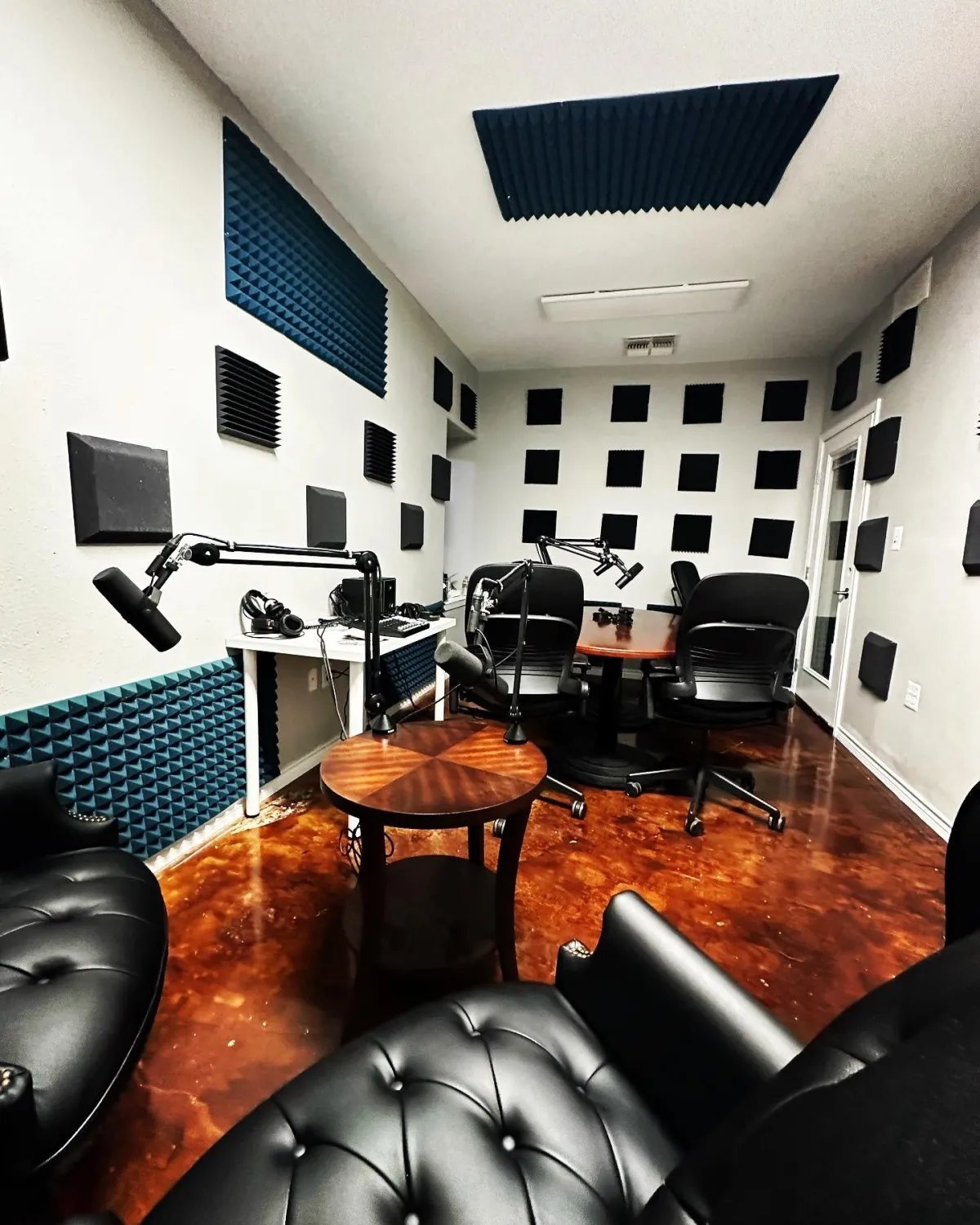Soundproof, professionally equipped podcast/music recording facility; membership and $89/hr non‑member sessions.